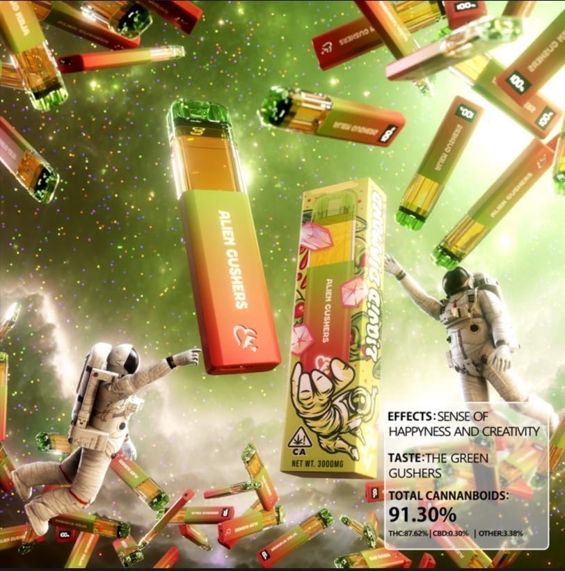 | Flavors | Hawaiin Punch, Hawaiin Bomb Pop, Grape Galaxy, Diamond Dust, Cranberry Jizz, Cocolandia, Cinnamon Toast, Churros, Cherry Yumyum, Carrot Cake, Carribean Frizz, Cactus Quencher, Blue Crack, Berries ‘N’ Milk, Alien Gushers |